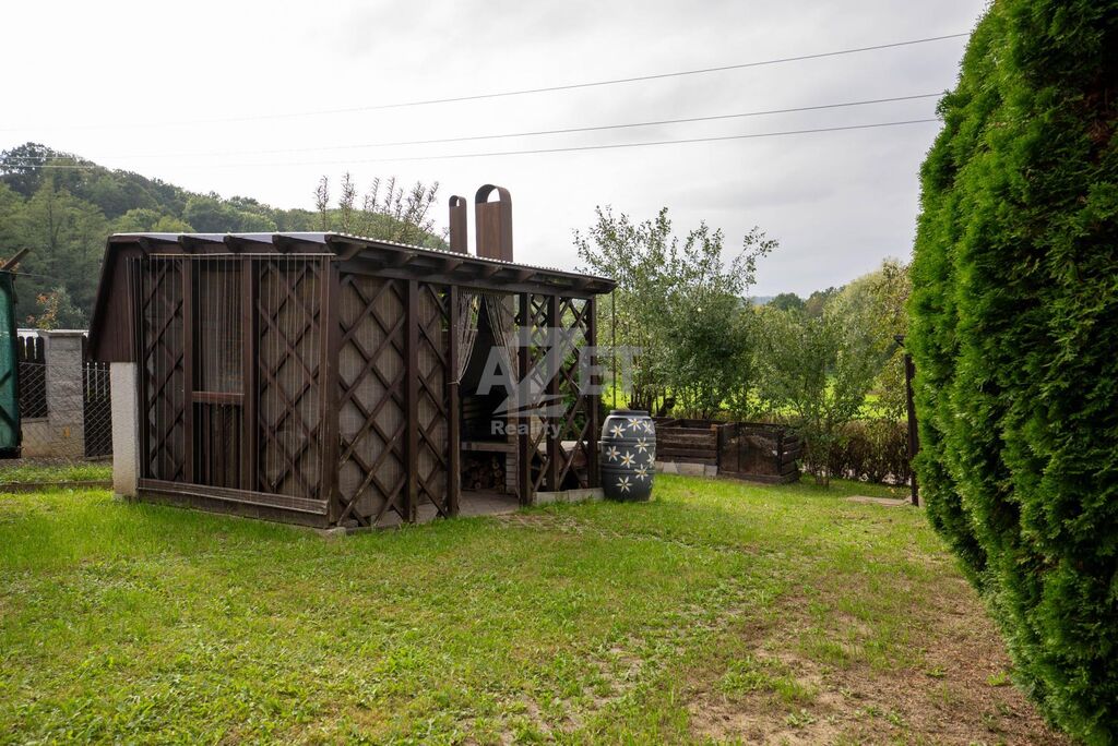 Na zahradě se nachází altánek s krbem a udírnou, ideální místo pro posezení s rodinou či přáteli a užívání si klidné atmosféry.
