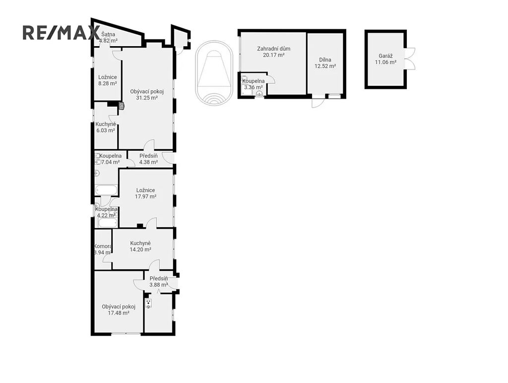 Na pozemku se nacházejí dvě další budovy. Jedna z nich slouží jako letní kuchyň, což je ideální pro venkovní vaření a posezení během teplých měsíců. Druhá budova je využívána jako dílna, která poskytuje dostatek prostoru pro různé kutilské a řemeslné činnosti. Dále je zde menší garáž, která je vhodná pro parkování nebo uskladnění věcí.