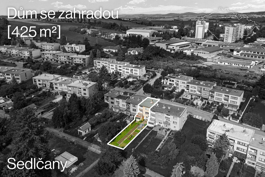 • Zděný řadový dům z roku 1970, tři podlaží, kompletně podsklepený, stropy betonové překlady