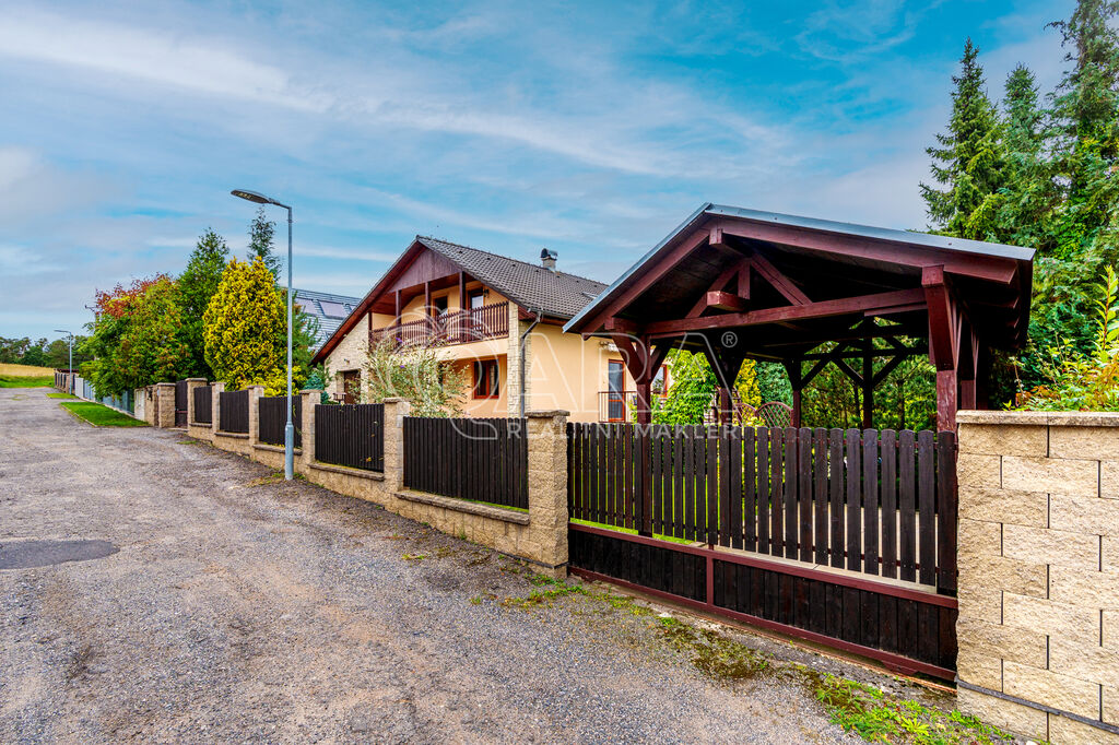 Dům z roku 2001 nabízí čtyři prostorné ložnice a obývací pokoj, který je propojen s kuchyní a zároveň se z obývacího pokoje dostanete na terasu, z které sejdete na zahradu, což vytváří příjemný a otevřený prostor pro rodinné aktivity. K dispozici jsou dvě koupelny s WC, přičemž každé patro má jednu. V přízemí se nachází zimní zahrada, která je ideálním místem pro odpočinek, zatímco v patře se můžete těšit z prostorného balkonu s výhledem do okolí.