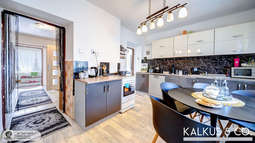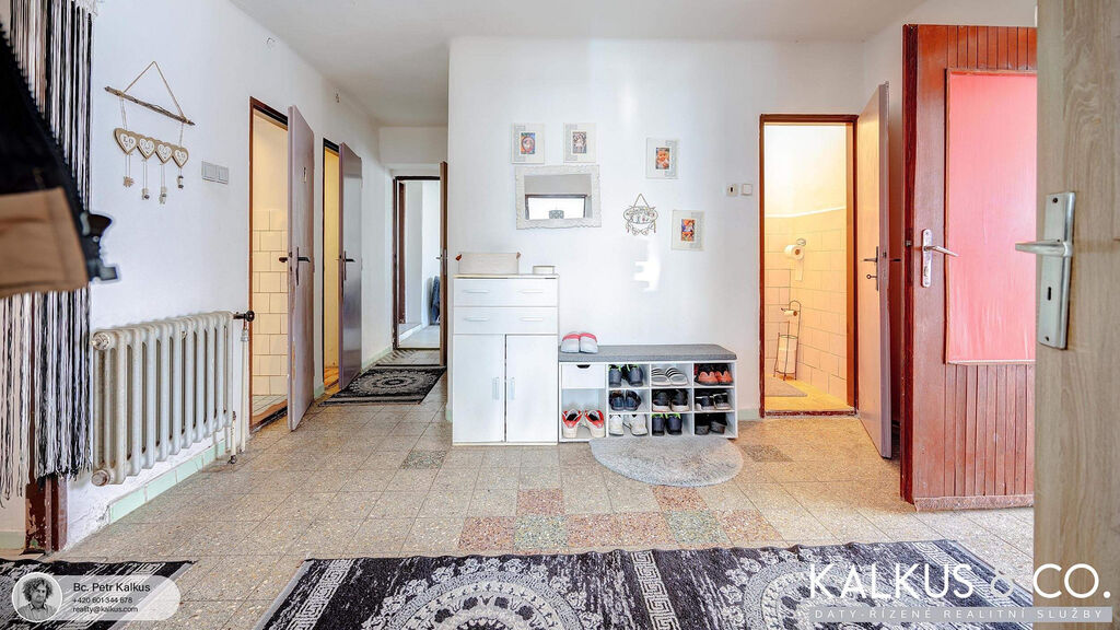 Hlavní obytná budova má aktuální dispozici 4+1 a podlahovou plochu přibližně 112 m². Dům je trvale obýván, částečně podsklepen (kotel na tuhá paliva) a udržovaný. Okna jsou původní dřevěná špaletová, podlahy tvoří plovoucí laminát. Půda je vyklizena a připravena k dalšímu využití. Dvě krajní místnosti a jedna navazující (cca 30 m², přístupná zatím pouze z nádvoří) mají klenuté stropy.