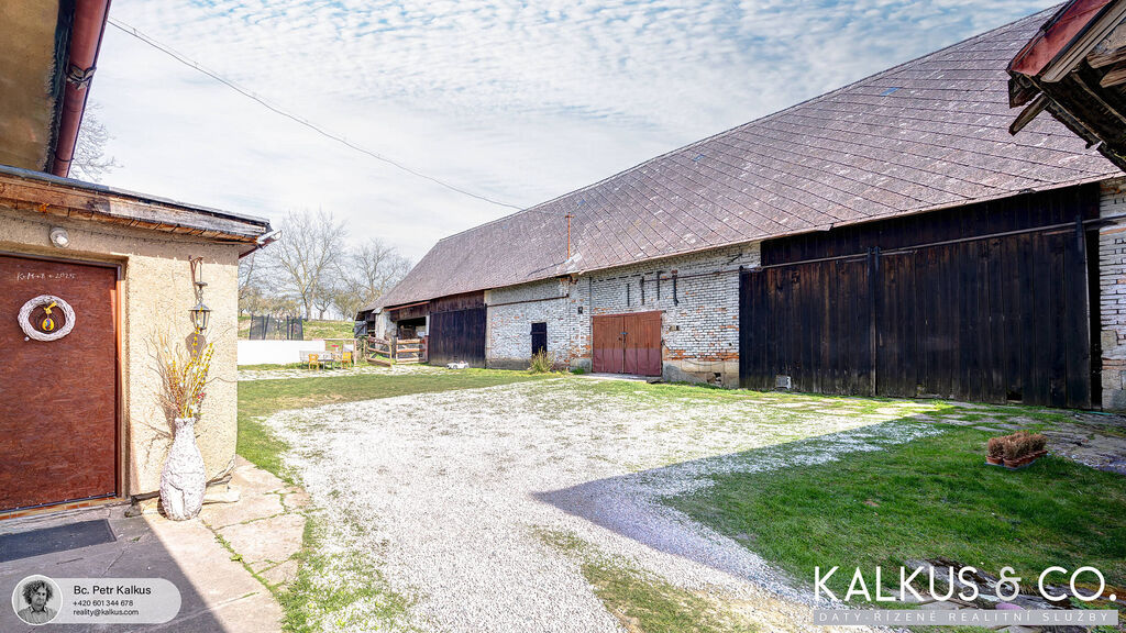 Rodinný dům s navazujícími stavbami se nachází na rovinatém až mírně svažitém pozemku o celkové výměře 6 600 m². Nemovitost je napojena na elektřinu (220/380 V), pitná voda je čerpána z vlastní studny, přičemž na hranici pozemku je k dispozici obecní vodovod. Odpady jsou svedeny do septiku.
