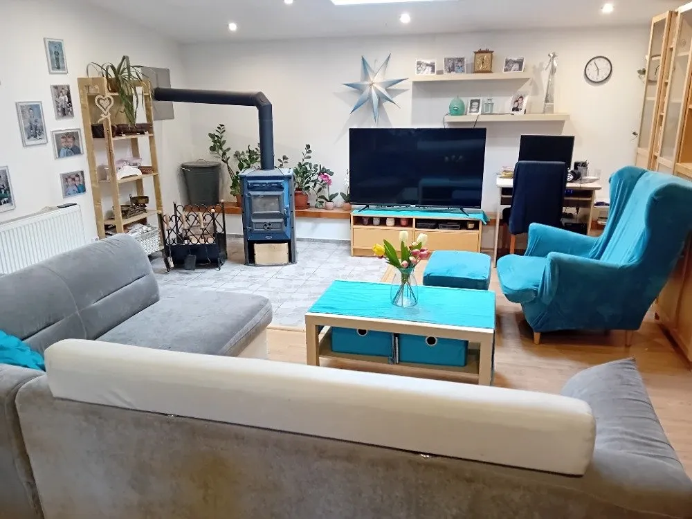 elektřina: 230V, 400V, je zde také přípojka 100A (hlavní elektroměr pro celý objekt, odpočtové pro oba byty)