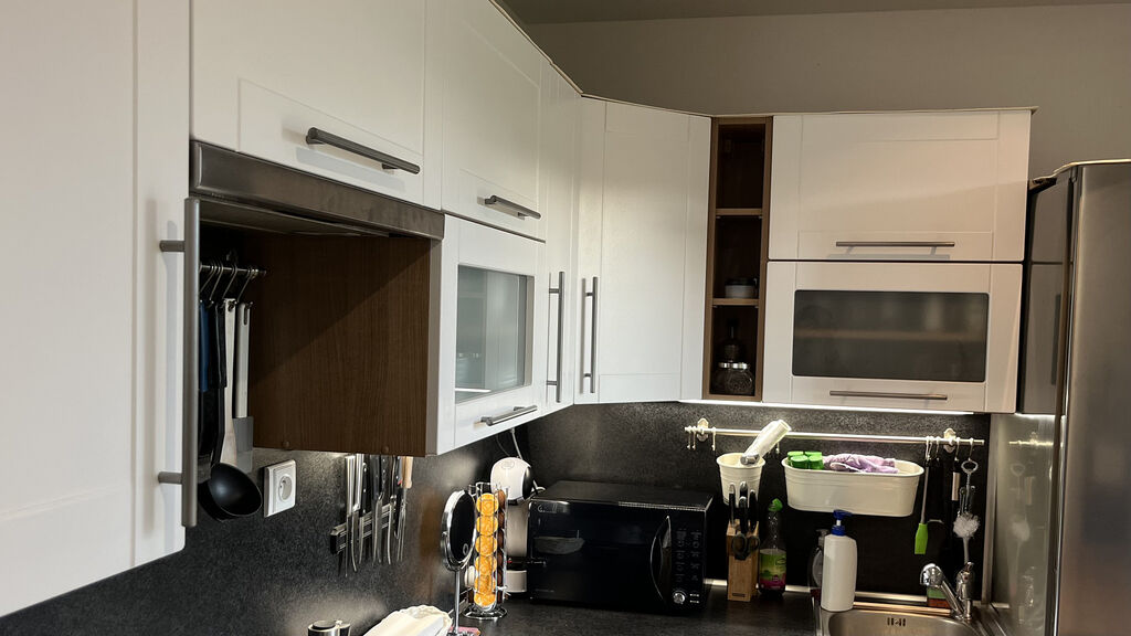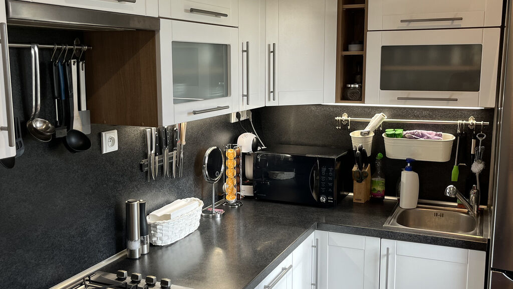 Kuchyňská linka je vybavena plynovým sporákem, elektrickou troubou a myčkou, což usnadňuje každodenní vaření a úklid. Na chodbě se nachází vestavná skříň, která poskytuje dostatek úložného prostoru. Dlažba v kuchyni a chodbě je praktická a snadno udržovatelná, zatímco v pokojích je plovoucí podlaha, která dodává bytu příjemný vzhled. Samostatné WC zajišťuje pohodlí a soukromí. V koupelně naleznete sprchový kout, což umožnilo umístit i pračku se sušičkou.