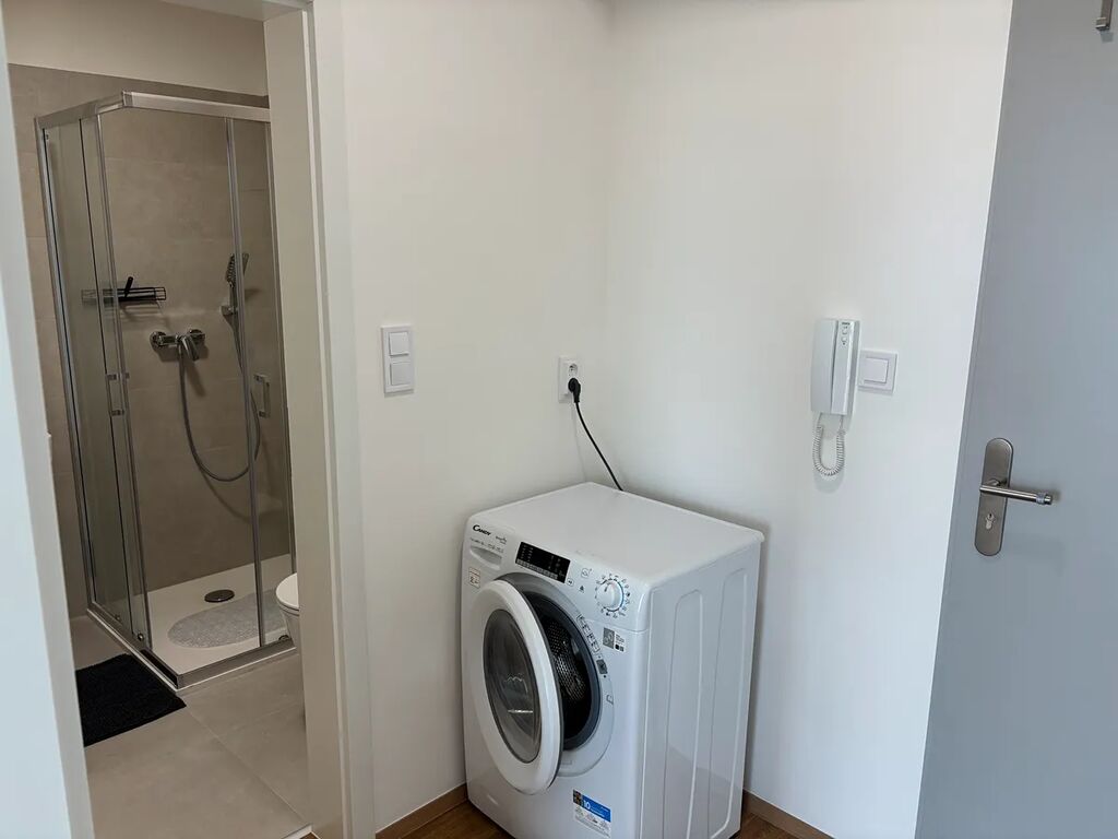 Byt disponuje obývacím prostorem s kuchyňským koutem, plně vybavenou kuchyňskou linkou včetně spotřebičů (myčka, varná deska, trouba, digestoř, lednice s mrazákem, led osvětlení), kombinovanou pračkou se sušičkou, jídelním stolem a židlemi. Po vzájemné dohodě s majitel je možné byt dozařizovat. Součástí je také koupelna se sprchovým koutem a toaletou. Botník na chodbě. K bytu náleží sklepní kóje v suterénu domu.