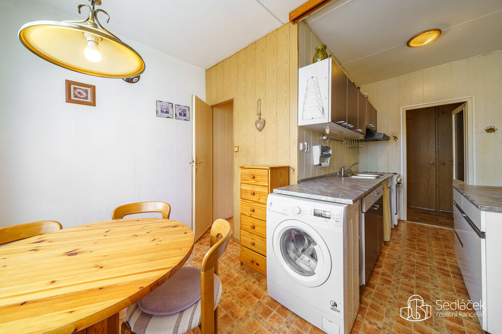 Jednotka je v původním, avšak velmi dobře udržovaném stavu. Dispozice zahrnuje kuchyň, obývací pokoj, ložnici, koupelnu, samostatné WC a předsíň s vestavěným úložným prostorem. Okna jsou plastová. Podlaha v kuchyni a v předsíni byla zrenovována. Součástí je také zasklená lodžie a sklepní kóje v mezipatře.