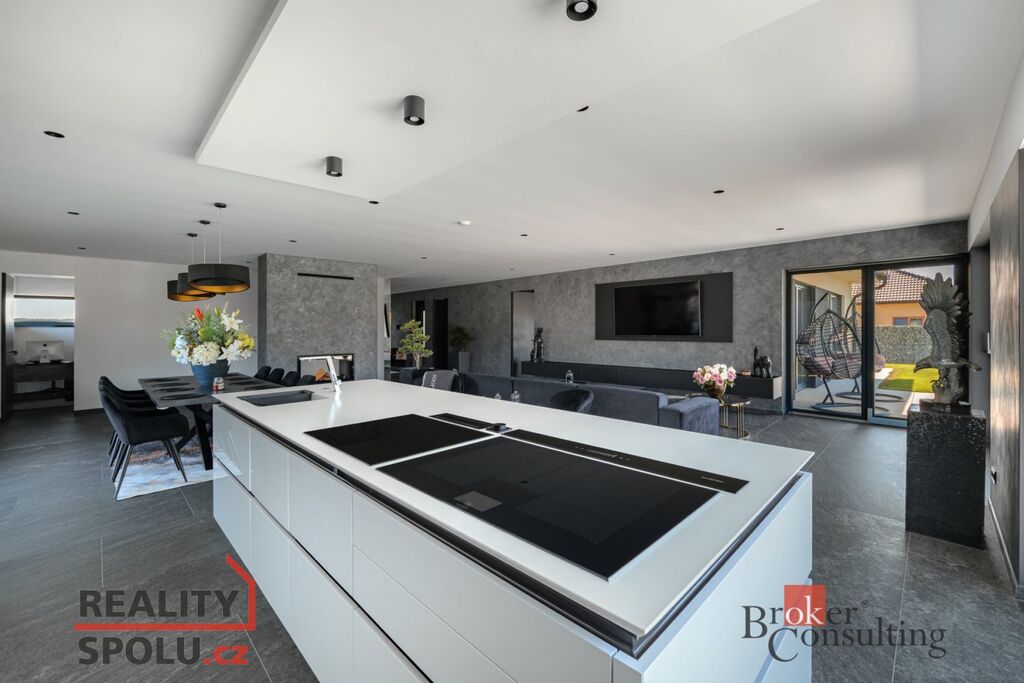 We are pleased to offer for sale a luxuriously equipped and spacious single-storey family home with a smart home system, featuring a layout of 4 rooms + kitchenette and a total usable area of 268 m². The property is located in a quiet residential part of Úherce (Plzeň-North district).