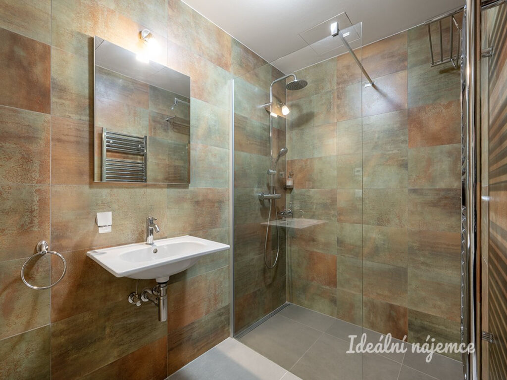 Byt je plně vybavený, takže se můžete ihned nastěhovat bez nutnosti dalšího zařizování. Kuchyně je vybavena lednicí, elektrickou a mikrovlnnou troubou, digestoří a myčkou nádobí. V obývací části najdete pohodlnou sedací soupravu, konferenční stolek, jídelní kout i televizi. Samostatný pokoj stejně jako kuchyně nabízí výhled do klidného vnitrobloku. Koupelna je zařízena sprchovým koutem, umyvadlem a toaletou, k dispozici je také pračka.