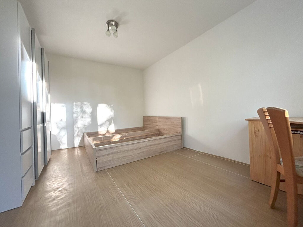Obývací pokoj je vybavený prostornou šatní skříní, dvoulůžkem s matracovými rošty a psacím stolem.