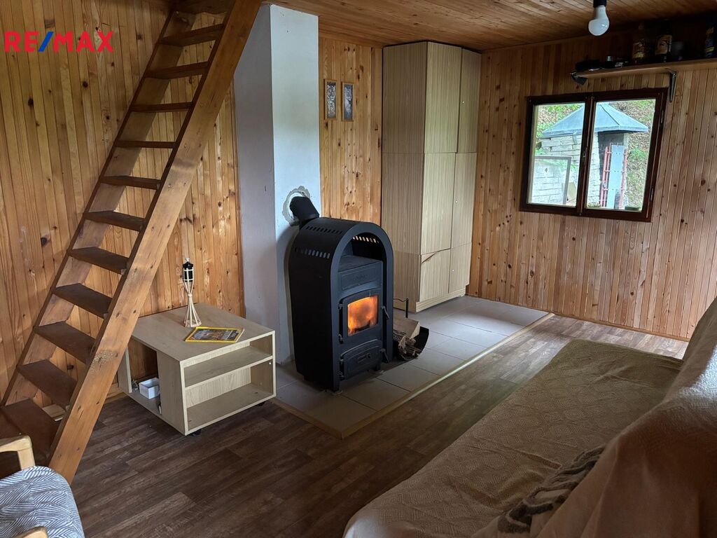 Dvoupodlažní chata má kapacitu 7 lůžek; 5 v podkrovním pokoji + dvoulůžková přistýlka v obývacím pokoji.