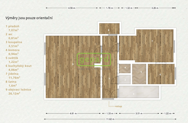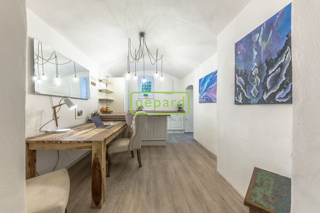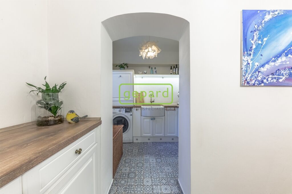 Jednotku o velikosti 57 m² tvoří prostorný obývací pokoj s klenutými stropy propojený s ložnicí (možno snadno přepažit na dva pokoje), kuchyň s jídelnou, koupelna s vanou, samostatné WC, walk-in closet a vstupní hala. 2 okna vedou do ulice a dvě okna do klidného vnitrobloku. Na podlahách dlažba a vinyl s podlahovým vytápěním. Pro vytápění jsou rovněž instalovány moderní infrapanely, které ve formě zrcadel či obrazů podtrhují unikátní design prostoru. Kuchyňská linka s ostrůvkem včetně vestavěných spotřebičů. CO2 a vlhkost za Vás hlídá rekuperační jednotka.