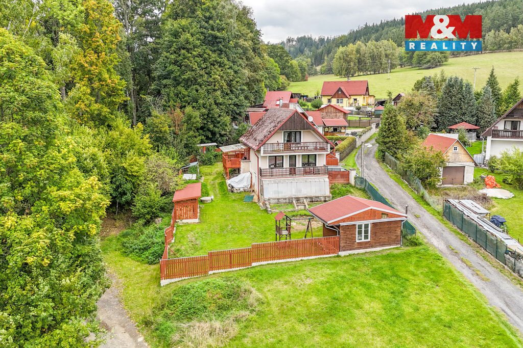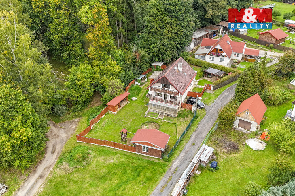 Nabízíme k prodeji rodinný dům v klidné obci Chotěnov, nedaleko Mariánských Lázní. Tento samostatně stojící cihlový dům zaujme svou polohou a dispozicí. V přízemí se nachází pracovna, koupelna, dále prostorný obývací pokoj s krbem a vstupem na balkon, dále pak kuchyně, na kterou navazuje zastřešená terasa. V prvním patře jsou dva pokoje, z toho jeden s balkonem a druhá koupelna. Část domu je podsklepená a je možné využívat úložné prostory na půdě. Z kotelny je vstup na zahradu, na které se nachází skleník, zahradní domek a dřevník. K domu náleží pozemek o rozloze 973 m², ideální pro zahradničení, drobné hospodaření nebo relaxaci. Zdrojem vody je vlastní studna, odpady jsou svedeny do septiku. Tato nabídka je ideální pro ty, kteří hledají klidné bydlení v krásném čistém prostředí s dobrou dostupností do Mariánských Lázní. Neváhejte a domluvte si prohlídku ještě dnes!