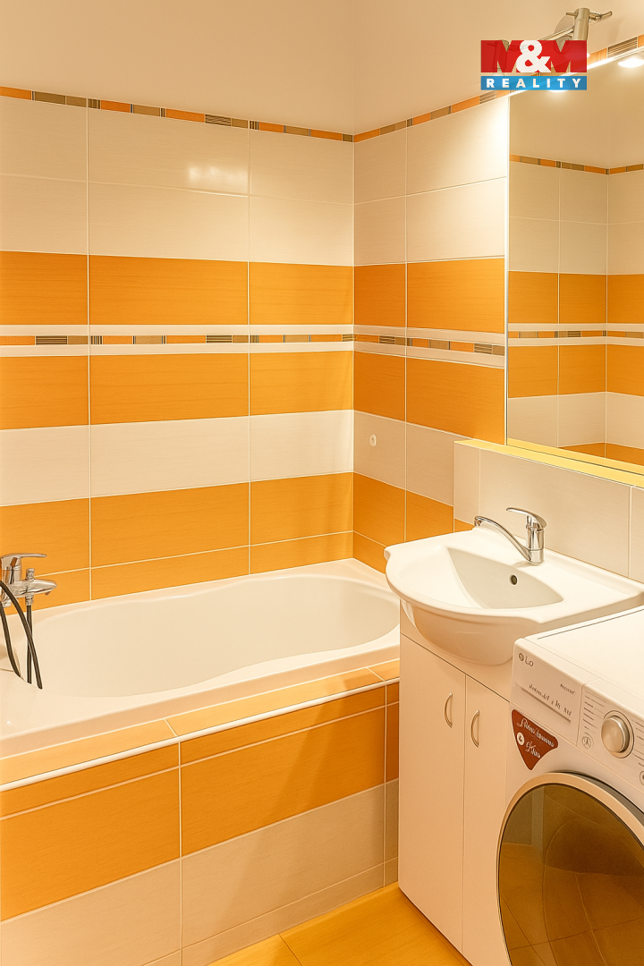 Byt je plně vybavený – k dispozici je kuchyňská linka se sporákem, lednice, pračka, postel, sedačka i úložné skříně. V koupelně se nachází vana, umyvadlo a WC. Byt je světlý, udržovaný a připravený k okamžitému nastěhování.