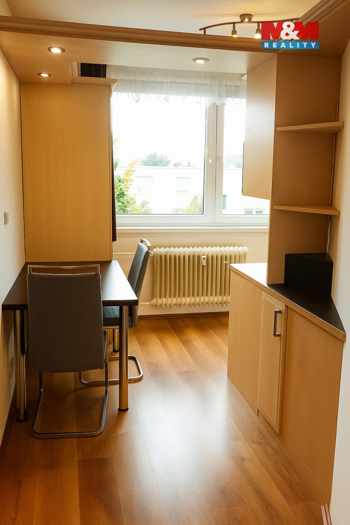Byt má rozlohu 35 m² a nachází se v klidném domě. Součástí je balkón, sklepní kóje a také společná kočárkárna.