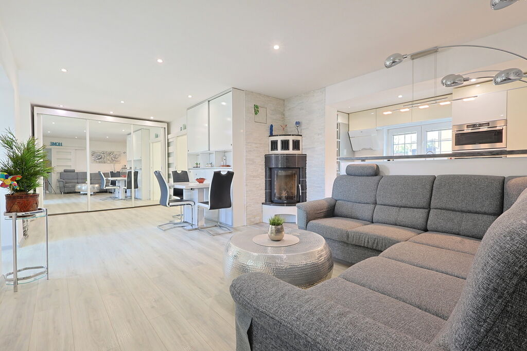 • prostorný obývací pokoj s kuchyňským koutem a přímým vstupem na terasu