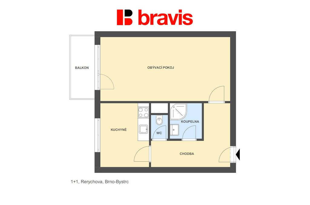 Ve výhradním zastoupení majitele nabízíme k dlouhodobému pronájmu velmi pěkný byt o velikosti 1+1 v klidné lokalitě Brno - Bystrc na ul. Rerychova.