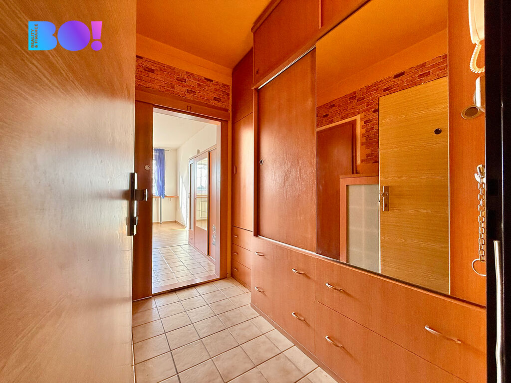 V chodbě se nachází vestavěná skříň, díky které je možné efektivně využít prostor. V pokoji je nově položená plovoucí podlaha a proběhla zde také výmalba na bílo. Kuchyňský kout je vybavený lednicí, pračkou, varnou deskou, elektrickou troubou a barovým pultem s židlemi. Dům je vybaven výtahem a součástí jednotky je také sklepní koje.