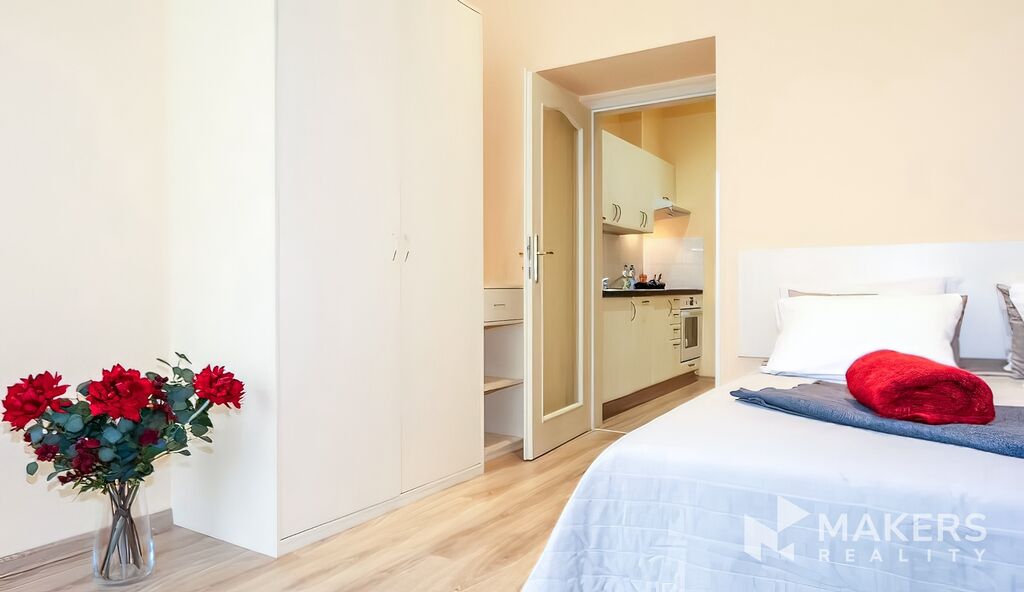 Nabízíme k dlouhodobému pronájmu (s možností krátkodobého pronájmu) světlý a velice útulný byt 1+1 o celkové ploše 40m2, který se nachází ve 4. nadzemním podlaží cihlové budovy s výtahem v Máchově ulici, Praha 2 - Vinohrady.