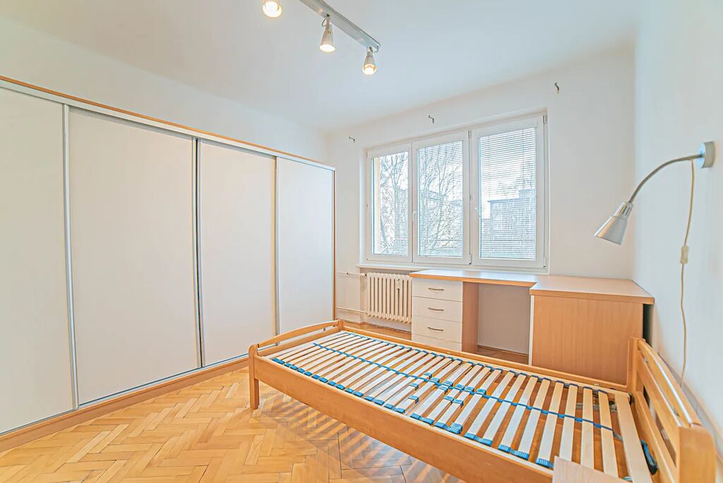 Prostorná ložnice s vestavěnou skříní nabízí dostatek místa pro odpočinek i úložné řešení.