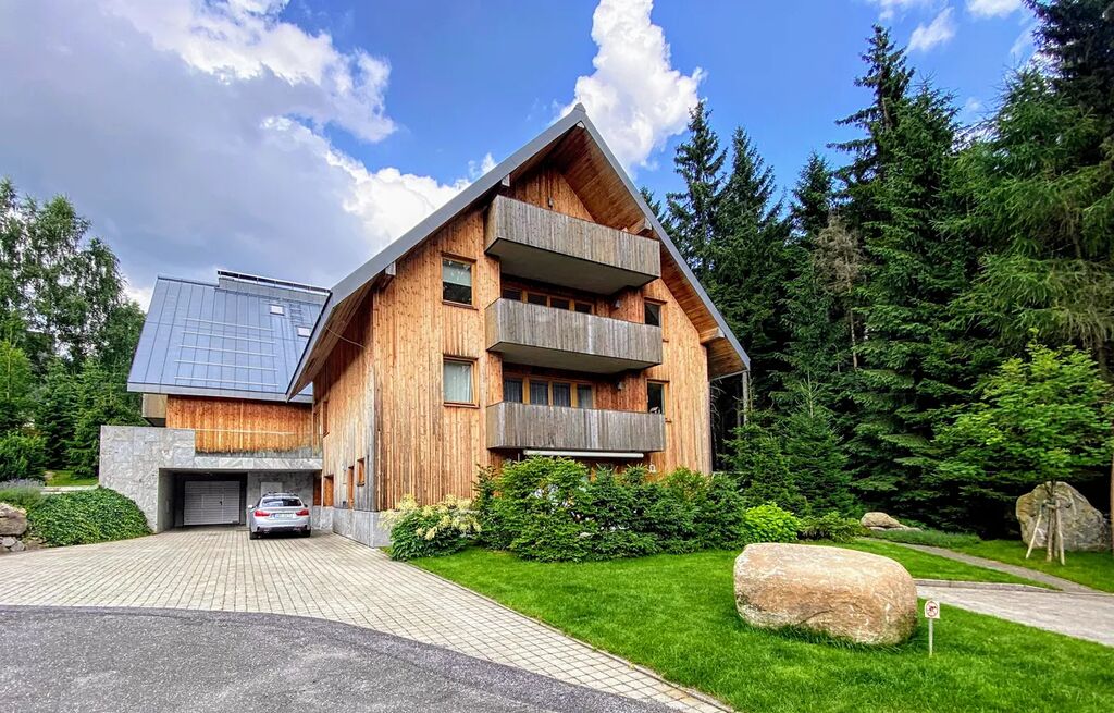 Exkluzivní apartmán na jednom z nejhezčích mistv Harrachově. Citlivě a elegantně řešený interiér.Byt je složený ze dvou jednotek a dvou garáží a byly tedy kompletně změněny dispozice. Dvě ložnice jsou v přízemí a jedna v 1. patře.Lyžaři a milovníci zimních radovánek ocení sušárnu, prádelnu a saunu, to vše v bytě naleznete. Dva Krby, podlahové i ústřední topení. Tento apartmán má vše, co může člověk chtít od pobytu na horách v jakékoli roční době. Vhodný pro rodinu.Do centra Harrachova pěšky pár minut. Naprostý klid. Občas přijdou srnky a veverky. Před okny lze pěstovat např. bylinky, ráno tak mít čaj z čerstvých bylin, maliny, borůvky atd.Děti si budou hrát na vlastním písku, houpačkách, trampolíně. Grill, oheň vše na vlastním pozemku.Drahokam v Krkonoších.Možnost financování hypotéčním úvěrem, se kterým Vám rádi pomůžeme.