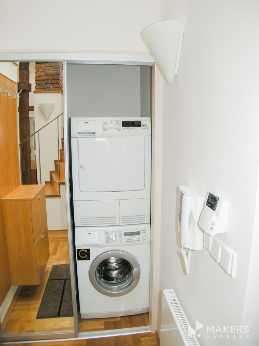 Nabízíme k dlouhodobému pronajmu krásný světlý mezonetový byt 3+kk o celkové ploše 88m2 + 9m2 terasa na střeše domu, který se nachází v 5. podlaží v nově zrekonstruovaném domě pod Vyšehradem, kousek od Vltavy a jednu stanici tramvaje od metra Palackého náměstí.