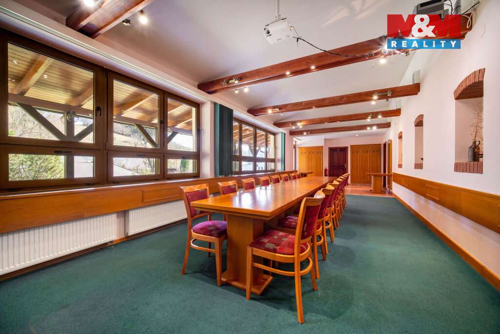 Nabízíme Vám k prodeji nadstandartní nemovitost s velkým potenciálem z hlediska využití, nacházející se v obci Hnátnice. Jedná se o bývalou restauraci s ubytováním a zázemím pro konání společenských akcí. Dispozice 1. NP: vstupní chodba, samotná restaurace s vybavenou kuchyní, společenský salonek, toalety pro dámy, pány, bezbariérové WC a technická místnost. Dispozice 2. NP: zasedací místnost, dva pokoje (dvoulůžkové), kancelář, sklad a dvě koupelny. Restaurace je částečně podsklepená a náleží k ní garáž, venkovní terasa, zahrada, hřiště na petangue, dvě parkoviště a zahradní domek včetně zastřešeného posezení s kuchyní a výčepem. Vytápění celého objektu zajišťuje plynový kotel do radiátorů, kachlová kamna a ohřev vody bojler. Nemovitost je napojena na veřejnou kanalizaci a vodovod. Pozemek je celý oplocen. Nemovitost lze využít jako sídlo firmy, restauraci nebo rodinný dům. Objekt je zabezpečen kamerovým systémem. Pokud Vás tato nabídka zaujala, zavolejte si pro více informací.