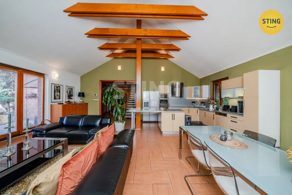 Nabízíme Vám k prodeji rodinný dům o vel. 6+KK, ul. Nad Úhorem, v Ostravě Petřkovicích. Jedná se o zděný dům (Ytong), zateplený (15cm polyester) se sedlovou střechou (krytina - BRAMAC taška), kolaudace v roce 2008. Půdorys domu: v 1.NP se nachází srdce celého domu - obývací pokoj propojený s kuchyní a jídelním zázemím (o vel.54,3m2) se vstupem na terasu. Atmosféru prostoru umocňuje krb s výměníkem. Prostor designově zkrášlují a také pomyslně rozdělují dřevěné trámy na stropě. Moderní kuchyňská linka na míru se spotřebiči (kuchyňské studio Válek & Kačena) s ostrůvkem. Praktická technická místnost o vel. 8,3 m2 (pračka, sušička), plynový kotel. Tři samostatné pokoje (16m2, 16,4m2, 13,5m2). Velkorysá koupelna (o vel.10,9m2) ,masážní vana s tryskami a sprchovací kout. Podlahové vytápění na celém patře. V 2.NP. se nacházejí dva samostatné podkrovní pokoje (o vel. 32,5m2, 40,9m2). Přístup k domu je zajištěn elektrickou bránou na dálkové ovládání. Exteriér domu - na dvoře položena kvalitní zámková dlažba. Za příznivého počasí si můžete vychutnat posezení či grilování na terase, kde je umístěn zahradní nábytek se slunečníkem a venkovní cihlová kamna. Veškeré nářadí či hobby nástroje si můžete umístit v zahradním domku (o vel.12m2, železná konstrukce, zateplený, obložený dřevem), kryté parkovací stání pro 2 auta, na pozemku zaparkuje až 6 aut. Obec Ostrava Petřkovice je oblíbená pro svou kombinaci klidného prostředí a snadné dostupnosti služeb. Patří mezi vyhledávané části Ostravy zejména díky svému charakteru rodinné výstavby a dostupnosti k přírodě v okolí. Pokud hledáte ideální rodinné bydlení neváhejte mne kontaktovat telefonicky či mailem. Budu se těšit na prohlídku s Vámi. Do konce dubna 2026 nabízíme prostřednictvím našeho partnera úrokové sazby od 4,69 % p.a. Více informací Vám sdělí náš specialista na prohlídce.