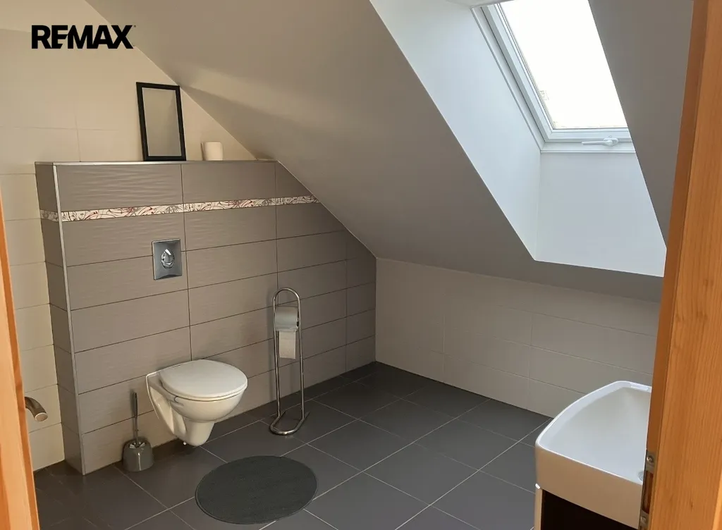 dva pokoje,kuchyňská linka, koupelna s WC a dále pak dalšími půdními prostory které navazují a jdou tak rozšířit o další pokoje případně pro jiné využití.