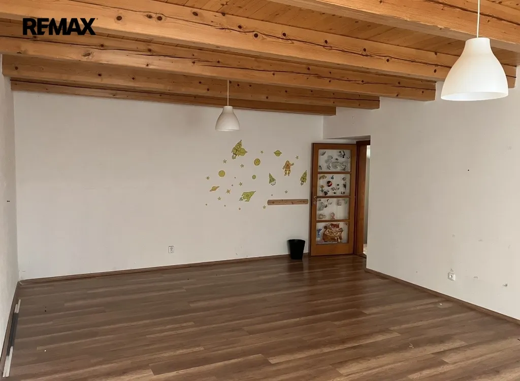 dva pokoje,kuchyňská linka, koupelna s WC a dále pak dalšími půdními prostory které navazují a jdou tak rozšířit o další pokoje případně pro jiné využití.
