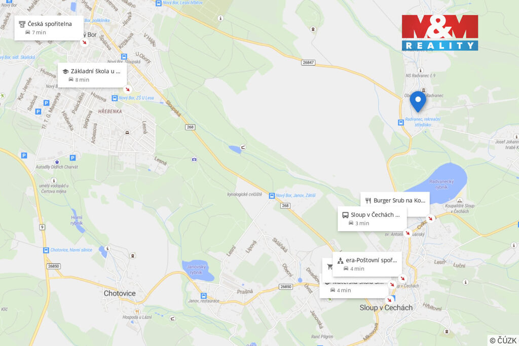 V docházkové vzdálenosti se nachází Nový Bor, Sloup v Čechách, Pekelné Doly, Radvanecký rybník a další možnosti turistiky i odpočinku. Oblast je vyhledávaná především milovníky klidu, přírody a aktivního trávení volného času.