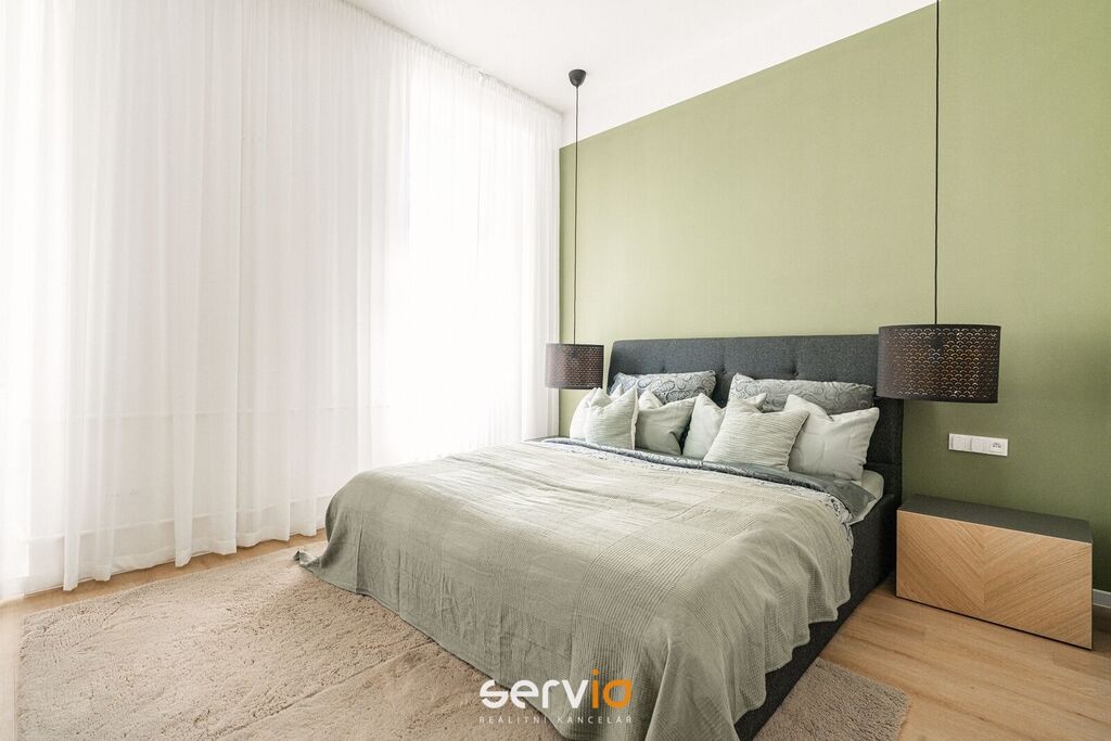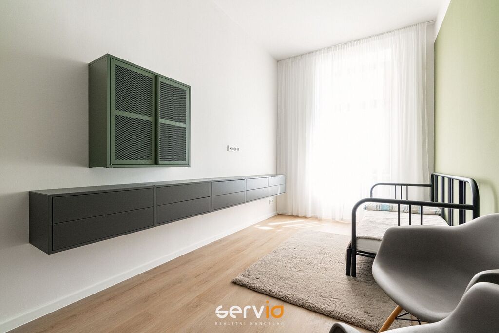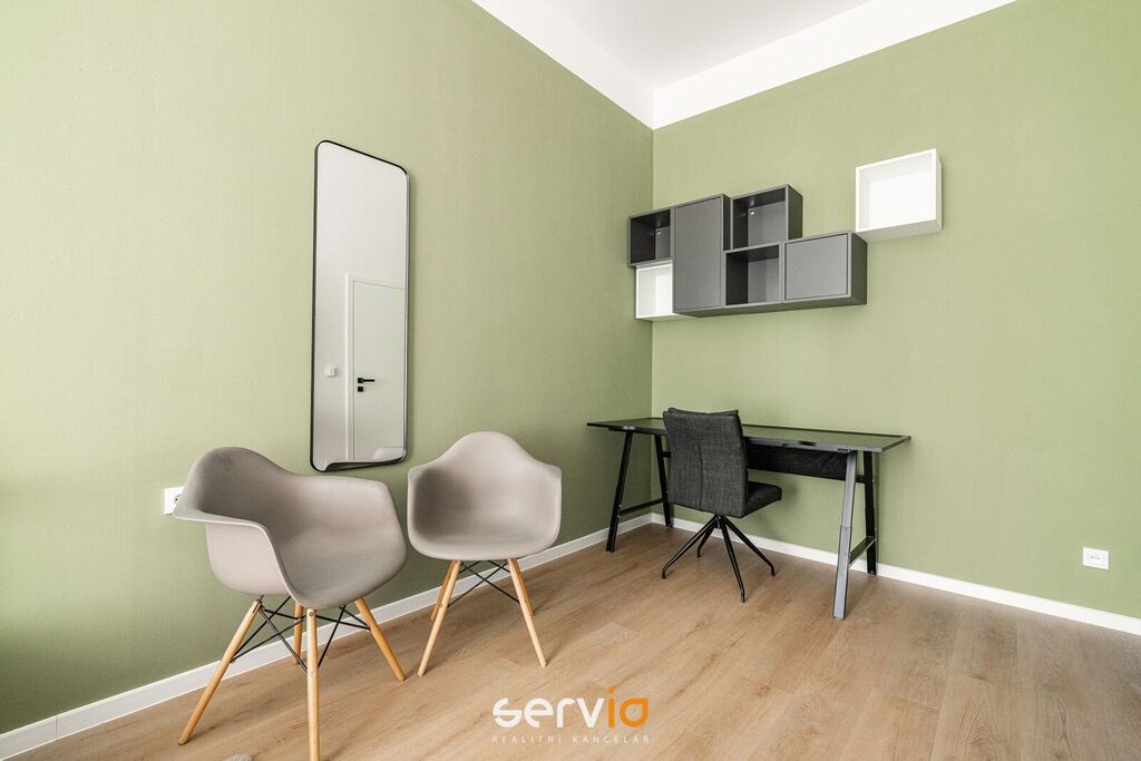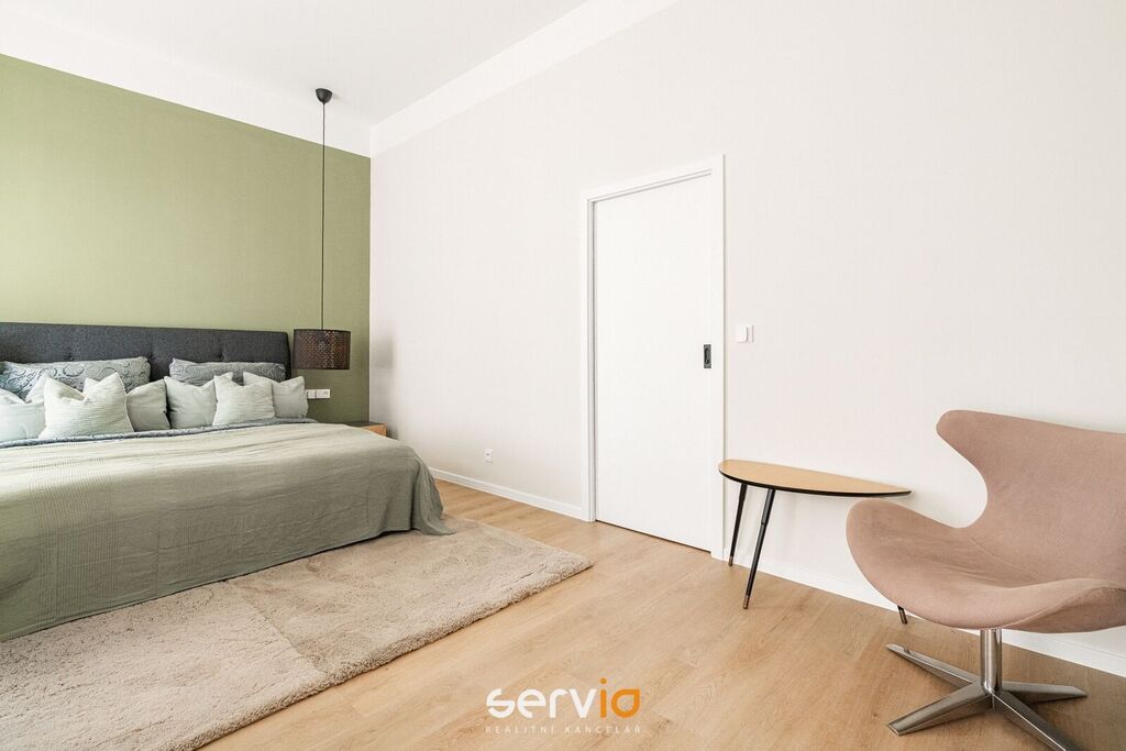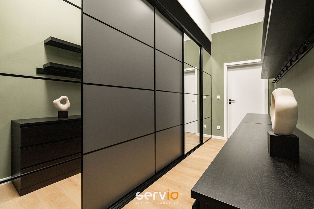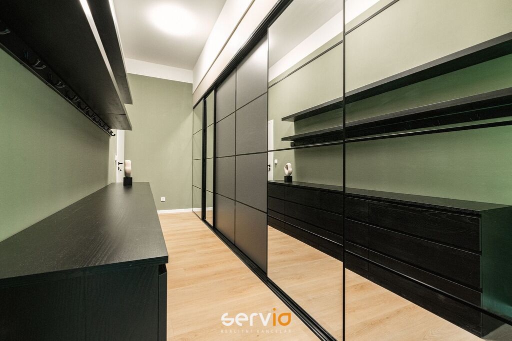 Při rekonstrukci byly použity vinylové plovoucí podlahy, povrch srovnán vyrovnávacím podsypem, podkladem fermacell a nivelací ve všech místnostech. Vyměněny všechny rozvody sítí (topení původní - tělesa a rozvody revitalizované nátěrem). V koupelně a WC je položená dlažba. Bezfalcové dveře se skrytými panty. Vybavení dále zahrnuje kuchyňskou linku se zabudovanými spotřebiči (el. trouba, mikrovlnná trouba, indukční deska, lednice s mrazákem), vestavné skříně, velká postel, sedačka, stoly, židle a ostatní nábytek na fotografiích. Koupelna nabízí nadstandardně prostorný sprchový kout s vyspádovaným odtokem, prostor na pračku a sušičku. Samostatné závěsné WC s pod-omítkovým splachováním a s bidetovou sprchou. Designové záclony Décora na míru. Chytré vypínače + HUB pro ovládání světel pomocí mobilní aplikace. U většiny osvětlení lze nastavit intenzita, v obývacím pokoji navíc i "teplota" světla. Prostorná šatna, sloužící zároveň i jako průchozí chodba do ložnice a dětského pokoje/pracovny. Vytápění a ohřev vody dálkově z tepláren. V bytě je zapojen internet a wifi router.