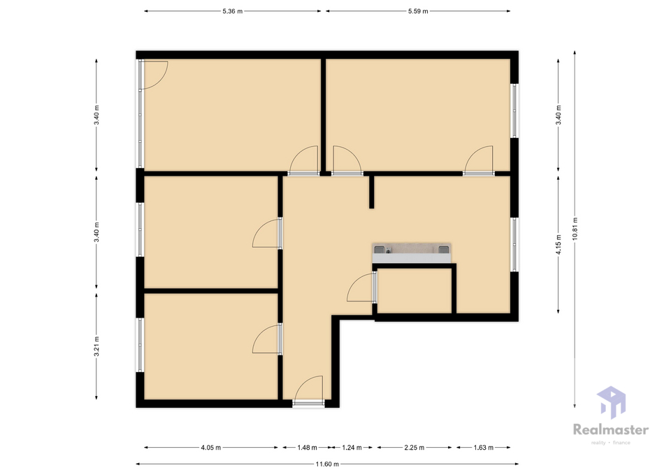 Vstup je do velké chodby ze které se vchází do všech místností, pokoje nejsou průchozí. Lodžie s výhledem.