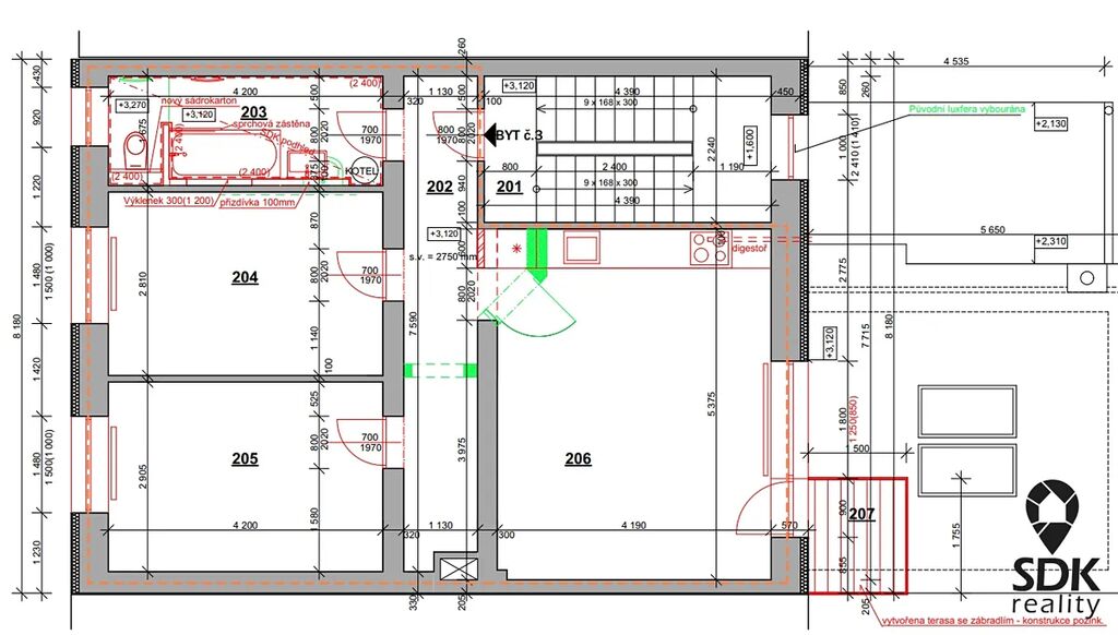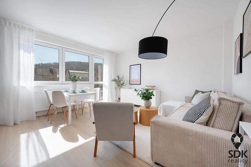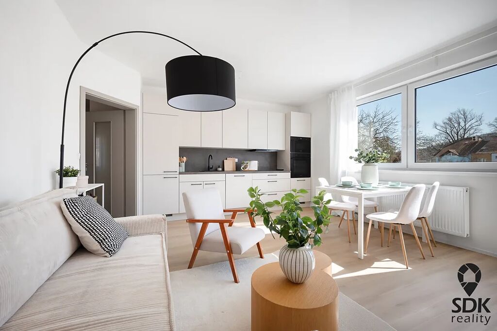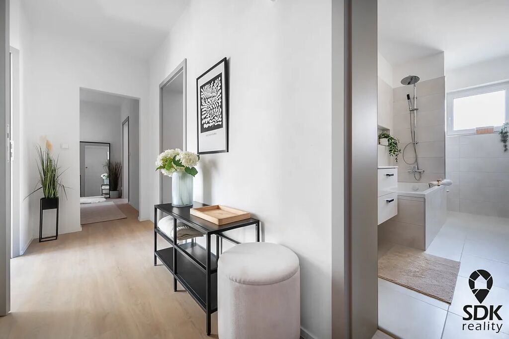 Byt se nachází v druhém patře a má rozlohu 67m² + balkón 2,6 m². Celý byt prošel rekonstrukcí v letech 2024/2025. Během rekonstrukce byly provedeny nové rozvody vody, odpadu a elektřiny. Dále byly vyměněny podlahy, okna ( nově plastová s trojsklem) a provedené nové omítky a stropní podhledy. V bytě je nová kuchyňská linka na míru od firmy SYMERSKY, která je plně vybavena spotřebiči.