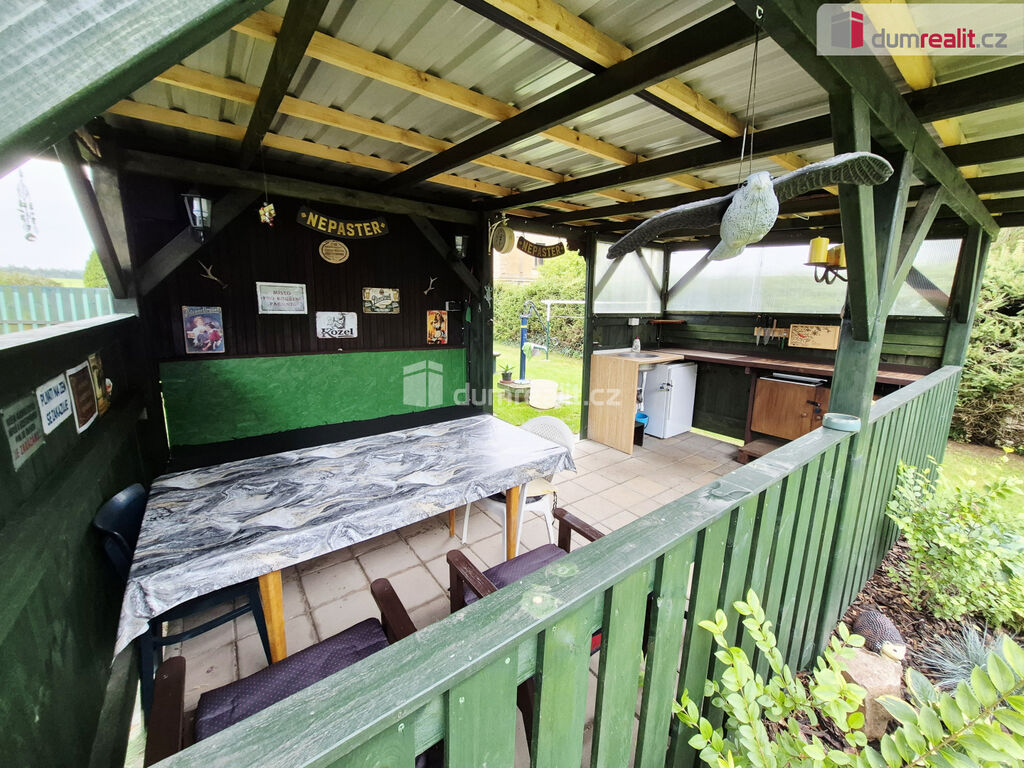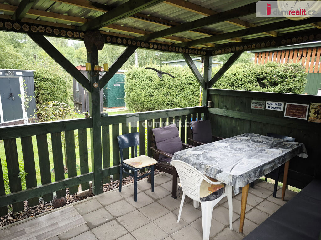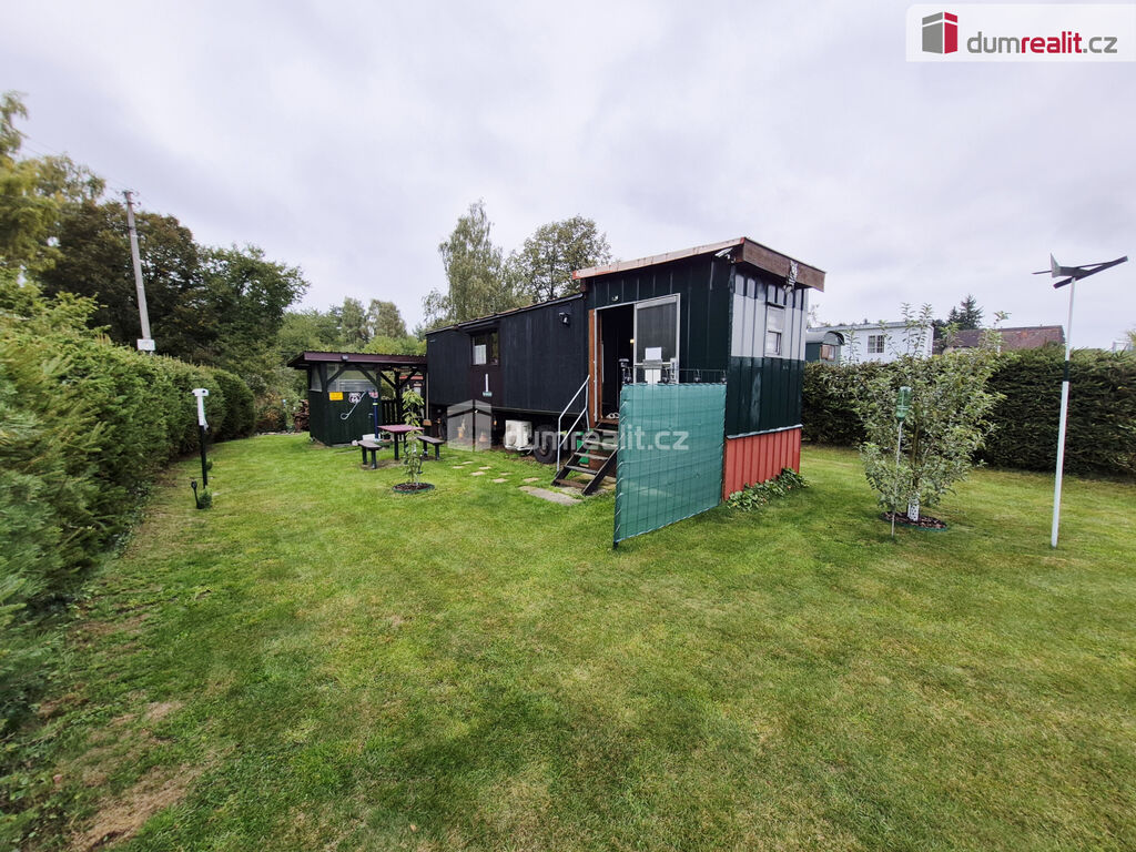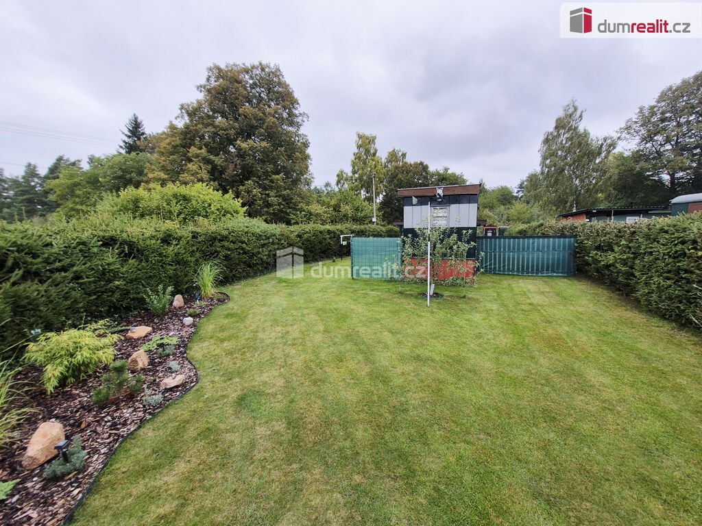 Pozemek je vedený jako zahrada o rozloze 440 m² ohraničený jehličnany, a to jedlí a smrkem. Zahrádka má pěkný udržovaný travnatý porost a několik malých okrasných míst. Je zde kromě mobilní maringotky i zastřešená pergola o velikosti 15 m², kde je i letní kuchyně se zavedenou elektřinou, suché WC a bouda na soukromé umývání.