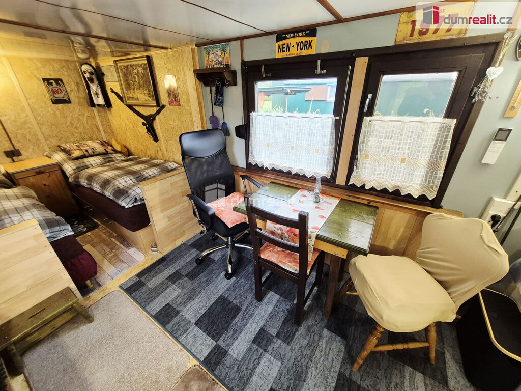 Nabízíme Vám prodej ZAHRADY v obci Zdeslav nedaleko Rakovníka, na které si šikovný majitel kutil upravil mobilní maringotku.