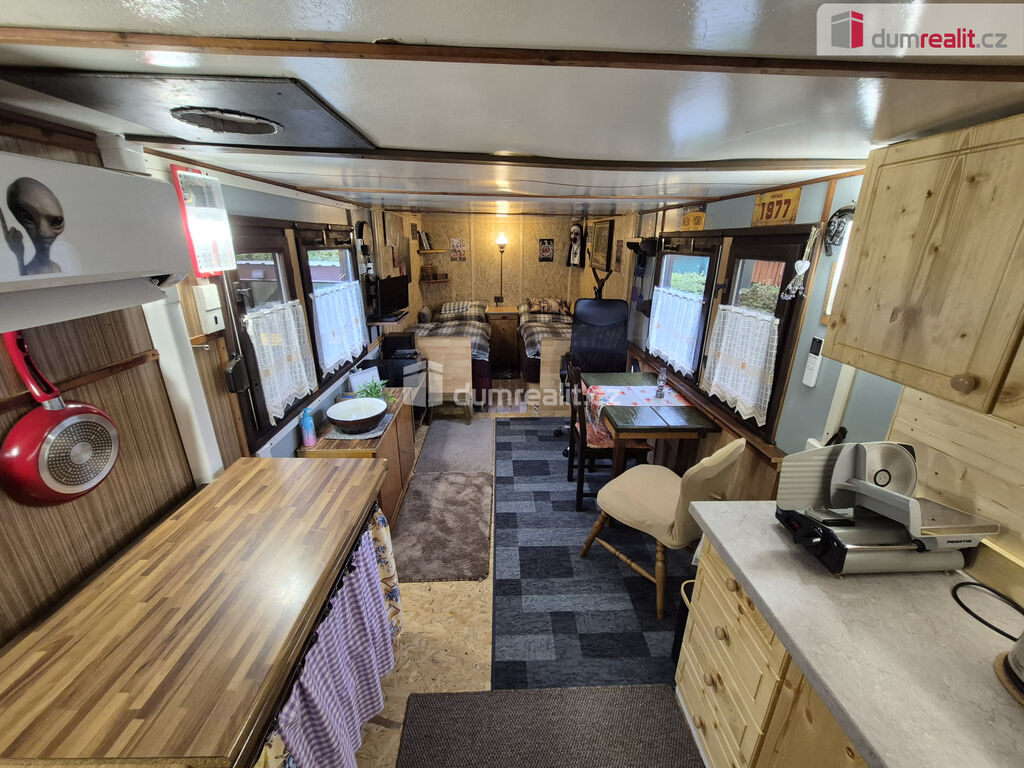 Je zde přiveden elektrický proud, takže lze využívat i v zimě, protože nainstalovaná klimatizace Vám maringotku během chvilky krásně vyhřeje. Zateplená maringotka je dlouhá 7 m, široká 2,4 m + přístavek sloužící jako předsíň cca 6 m². Je plně vybavena, takže si zde uvaříte, upečete, díky WIFI kouknete na TV a na noc zatáhnete venkovní rolety.
