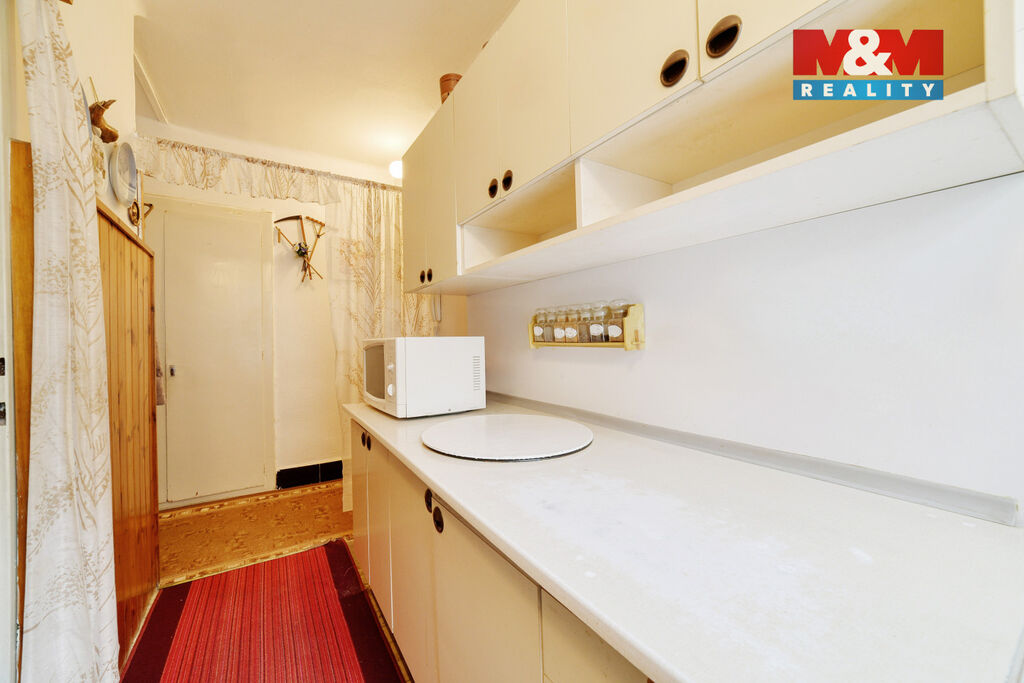 Interiér vyžaduje rekonstrukci – právě to však otevírá skvělou možnost vytvořit si bydlení přesně podle vlastních představ. Velkým plusem je také prostorné podzemní podlaží se sklepními prostory s plochou celkem 16 m², které nabízí praktické úložné zázemí.