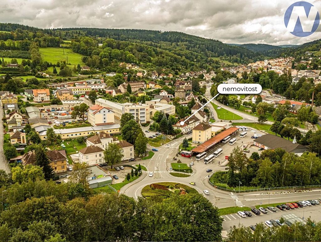 Nabízím prodej rodinného domu o dispozici 7+1 se zahradou (356 m2), garáží a prodejnou (nebytovou jednotkou - 65 m2) v přízemí, ve městě Vimperk, u autobusového nádraží. Dům je zděný, má 3 podlaží a je částečně podsklepen. V přízemí je nebytový prostor s vchodem z ulice, bývalý obchod - řeznictví (vybavený) se skladem a sociálním zázemí. Dvoupodlažní rodinný dům, nacházející se nad prodejnou, má dispozici 7+1 a podlahovou plochu 119 m2 + balkón 7 m2. Z 1. patra je východ na zahradu. V 2. patře jsou 3 ložnice a každá má svou šatnu. Dům má nová plastová okna, vytápěn je plynovým kotlem s rozvodem do radiátorů. Obchod má vlastní měřič elektřiny. Nemovitost je připojena na obecní vodovod a kanalizaci. Doporučuji prohlídku. S financováním Vám rádi poradíme. Můžeme nabídnout návrh řešení rekonstrukce interiéru od bytové designérky a okamžitou rekonstrukci k nastěhování tzv. na klíč podle prezentovaných vizualizací. Více informací u makléřky.