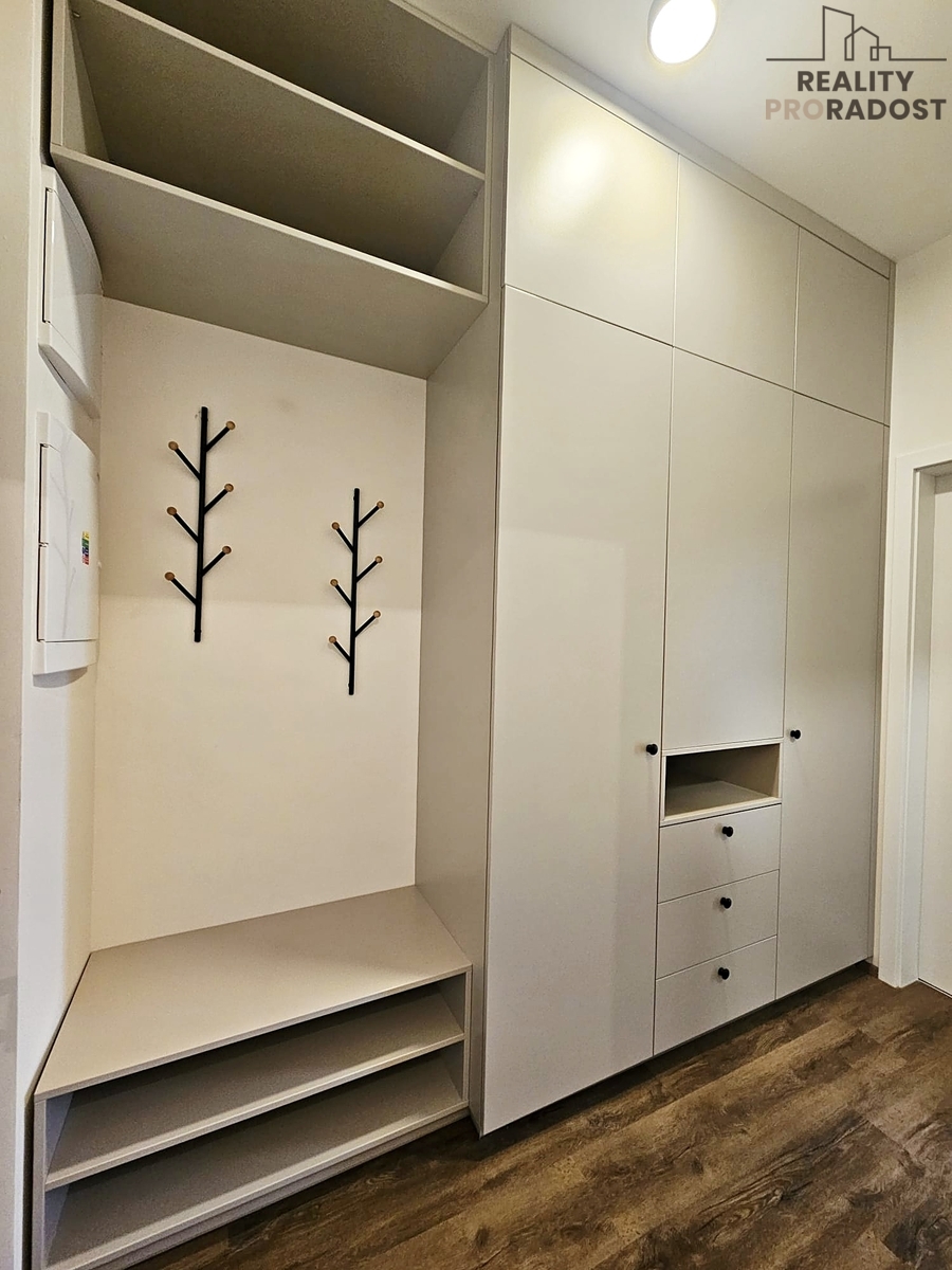 V předsíni se nachází prostorná šatní skříň s botníkem a věšákem na šaty.