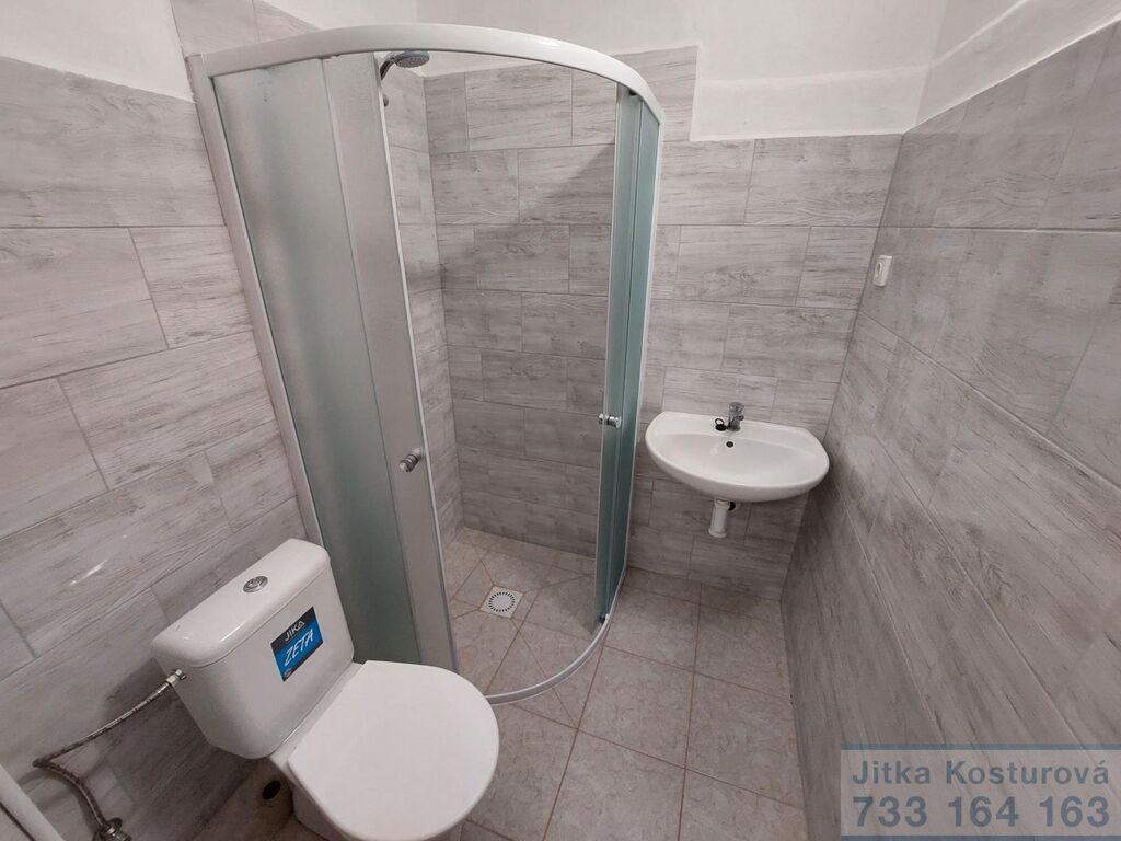 Nabízíme k pronájmu byt v osobním vlastnictví o vel. 1kk a výměře 28 m2. Nachází se v 1. NP panelového domu na adrese Budovatelů 6 v Krnově, v 1. NP. Byt je po rekonstrukci. Součástí bytu je vstupní chodba, hlavní pokoj s kuchyňskou linkou, vybavenou elektrickým sporákem a digestoří, koupelna s umyvadlem, sprchovým koutem a WC. Podlahy jsou laminátové, v koupelně dlažba, okna plastová. Měsíční nájemné činí Sedmtisíc Kč, poplatky za služby včetně elektřiny cca Dvatisícepětset Kč. Kauce 2 nájmy, provize RK 1 nájem. Majitel shání zaměstnaného nájemníka, max 1 osoba. Volné od listopadu 2025.