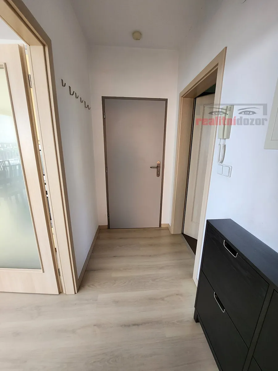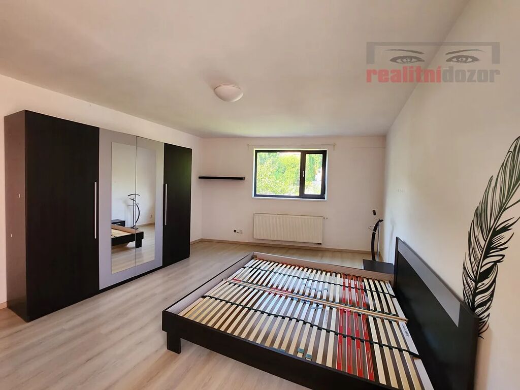 Vybavení: kuch. linka včetně spotřebičů - varná deska, digestoř, el. trouba, vestavná mikrovlnka, vestavná lednice s mrazákem, myčka 60 cm, v ložnici šatní skříň, dvoulůžko (bez matrací), komoda. V předsíni botník a věšáky. Některé vybavení je možné dle dohody odvézt.