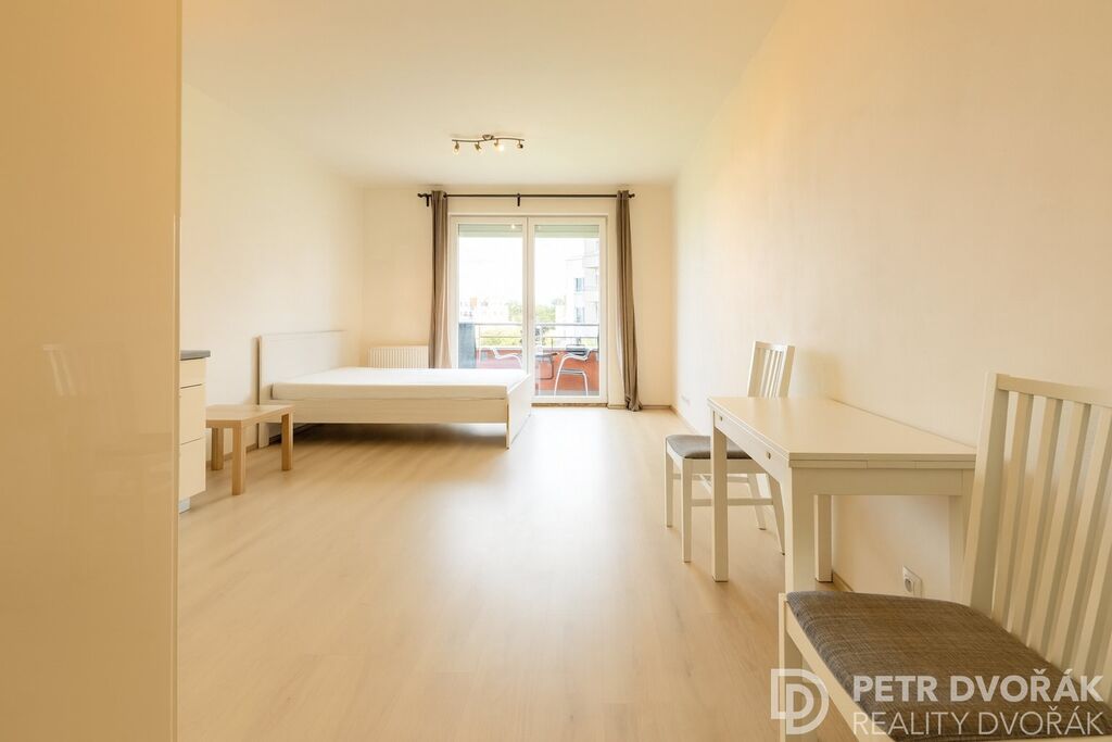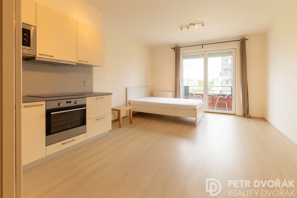 Dispozici bytu tvoří obývací pokoj s kuchyňským koutem vybaveným vestavěnými spotřebiči (trouba, varná deska, digestoř, myčka, mikrovlnná trouba, lednice s mrazákem), jídelní část a ložnicová zóna. Dále koupelna se sprchovým koutem a toaletou a vstupní chodba s prostornou vestavnou skříní. Z obývacího pokoje je přístup na balkon.