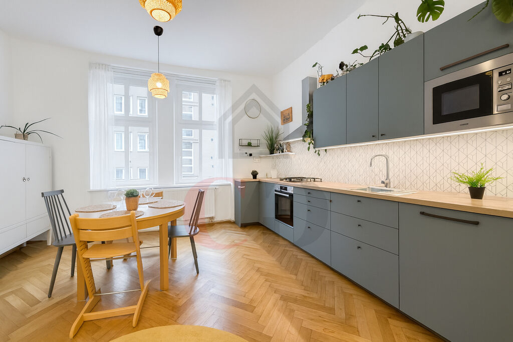 Byt se nachází v 1. patře cihlového činžovního domu a prošel kompletní rekonstrukcí. Díky dispozici a velikosti pokojů jej lze jednoduše využít i jako 4+kk – ideální řešení pro rodinu nebo pro ty, kdo potřebují více prostoru.