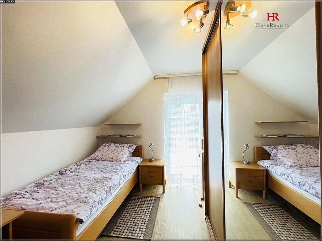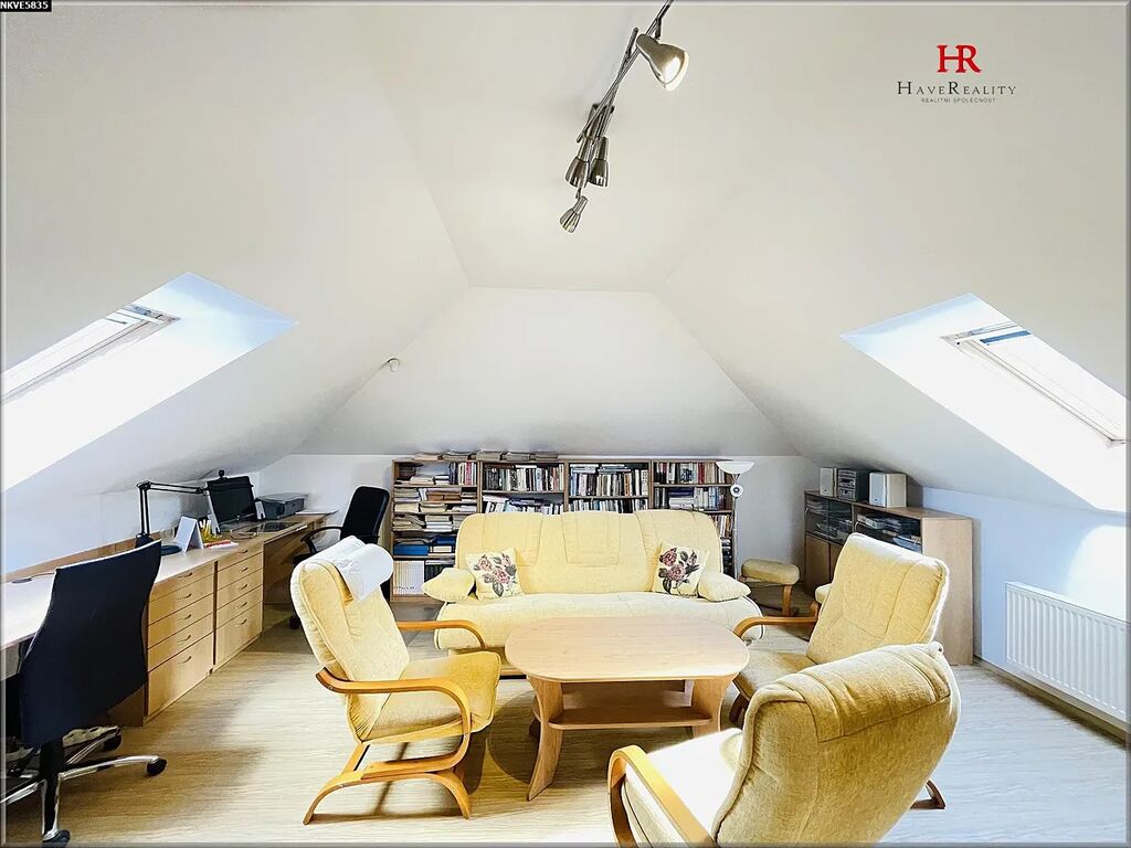 Z interiéru domu vstup na půdu – sloužící jako úložný prostor. Dům má zabezpečovací zařízení Jablotron. Okolí domu je již zastaveno rodinnými domy a vilami. Lokalita: cca 3,5 km od D0 – Pražský okruh a cca 20 km do centra Prahy. V obci se nachází obecní úřad, pošta, základní škola, mateřská škola, obchody, restaurace, autobusová zastávka PID, sportovní zařízení a cca 150 m od domu se rozprostírají lesy. V případě zájmu o koupi Vám rádi zprostředkujeme sjednání úvěru, právní servis, úschovu finančních prostředků.