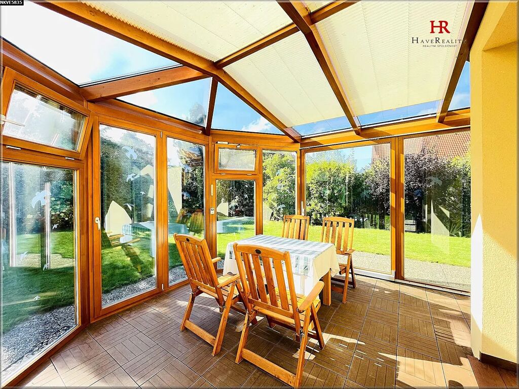 Topení: plynový kondenzační kotel Protherm – zajišťující ohřev TUV i vytápění domu prostřednictvím radiátorů. Podlahy – dlažba, dřevěná plovoucí a lino. Plastová okna, opatřena venkovními roletami s manuálním ovládáním. Střešní okna Velux – dřevěná. Obvodové stěny o šíři 45 cm se zateplením, izolace stropu – vata. PENB – C. Dispozice domu: 6+kk / zimní zahrada / balkon / garáž.