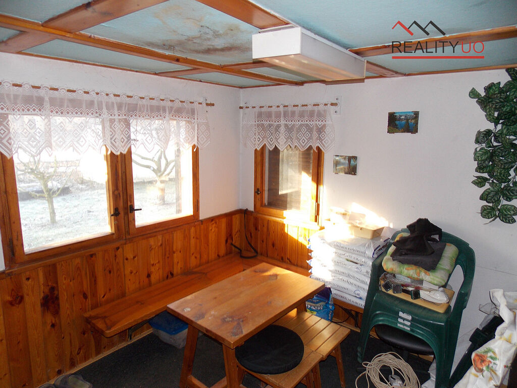 V zadní části pozemku se nachází obytná zahradní chata s číslem evidenčním. Chata je podsklepená.