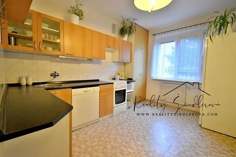 V kuchyni je dostatečný prostor pro jídelní kout. Kuchyňská linka disponuje pouze kombinovaným sporákem (vaření plyn, pečení elektřina), dále bude součástí lednice a mikrovlnná trouba. Jiné kuchyňské spotřebiče nebudou součástí nájmu.