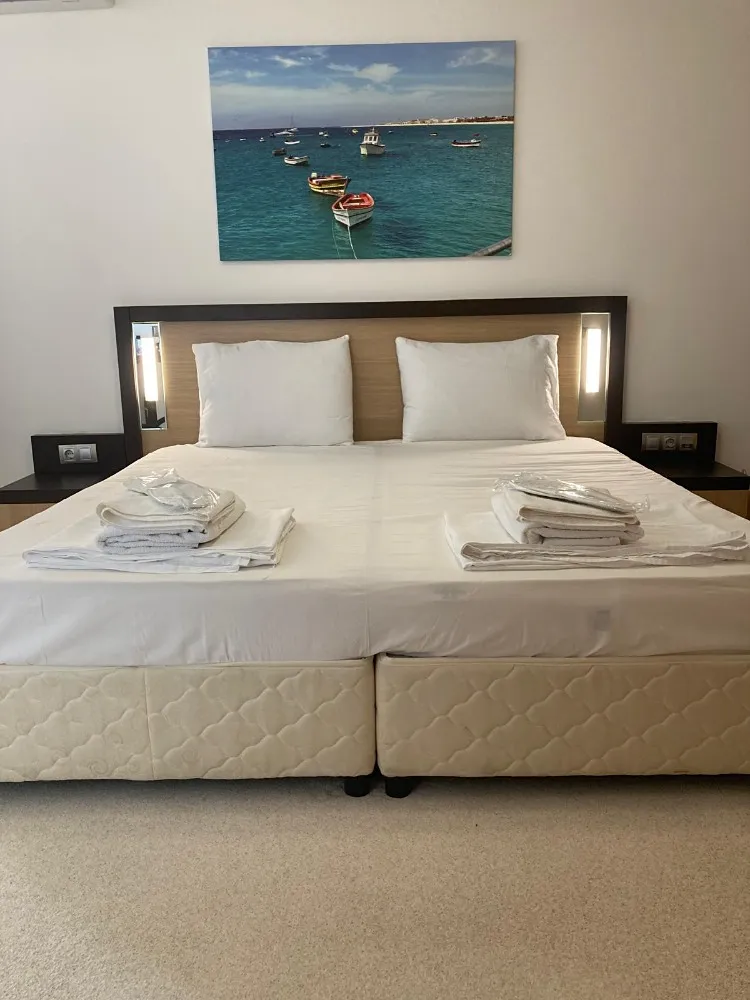 Nabízený apartmán je umístěn mimo hlavní budovu ve vile s výhledem na moře. Disponuje prostornou terasou, ložnicí a obývacím pokojem s rozkládací sedačkou a rozkládacím křeslem, plochou TV s kabelovými kanály a klimatizací v každém pokoji. K dispozici je rovněž vybavená kuchyňka s lednicí a jídelním stolem. V koupelně je vana a fén na vlasy. Wi-fi na pokoji je zdarma.