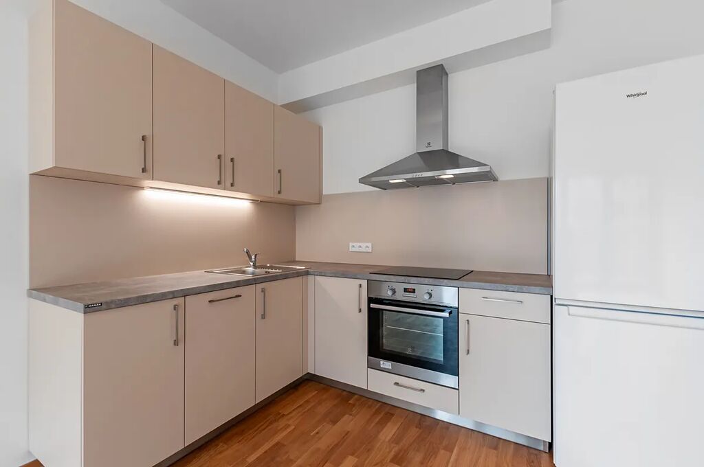 Nabízíme k dlouhodobému pronájmu od přímého vlastníka (neplatíte žádnou provizi) nový byt o dispozici 2+kk, nacházející se v nově vybudovaném komplexu Port Karolína v žádané lokalitě v Praze 8 -Karlín. Nový byt 2+kk o celkové výměře (ploše) 50 m2 se nachází v 7. NP a náleží k němu balkon o velikosti 8 m2 a sklepní kóje. Jednotka disponuje prostorným obývacím pokojem, vybaveným novou značkovou nadstandardní vestavěnou kuchyňskou linkou Hanák včetně kvalitních spotřebičů (lednice s mrazákem, indukční varná deska, myčka na nádobí, pečící trouba, digestoř) a samostatnou ložnicí. Koupelna má vanu a pračku, WC. V bytě je dostatek úložných prostor. Byt se pronajímá částečně zařízen.