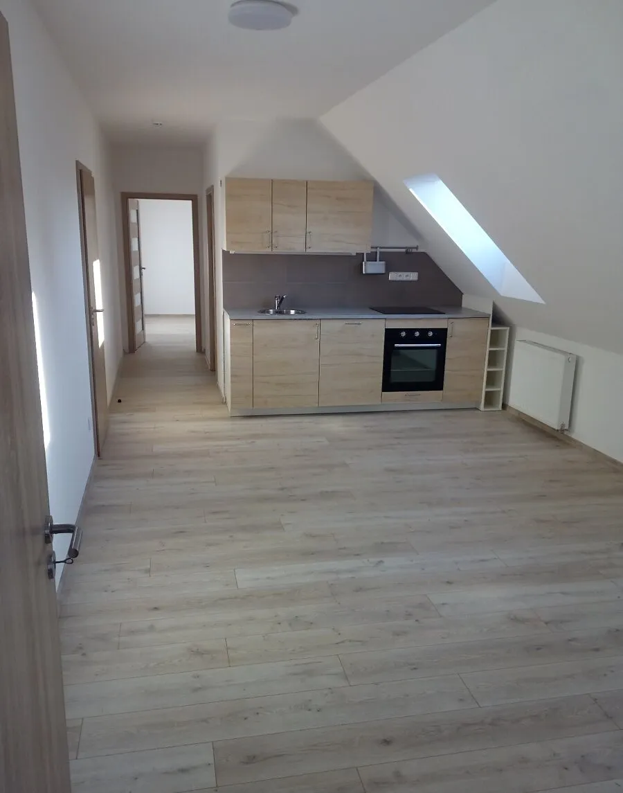 Nabízíme Vám k pronájmu nový podkrovní byt 2kk s výměrou 60 m2 a s možností vlastního parkování.Byt má základní vybavení jako je pračka, myčka, trouba, indukční deska. Cena nájmu je 10 000,- plus 3000,-energie